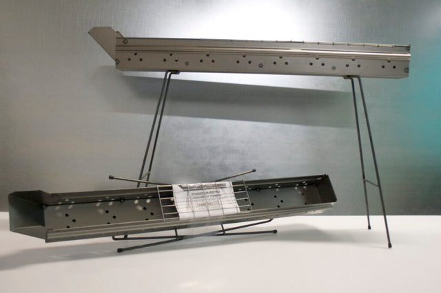 Canalina in ferro spessore mm. 0,8 con piedi richiudibili per un minor ingombro da utilizzare solo in spazi aperti, terrazzo e giardino. Cuoce circa 80 arrosticini come da rigorosa tradizione abruzzese. Comoda da trasportare.